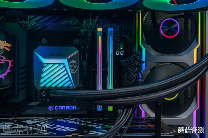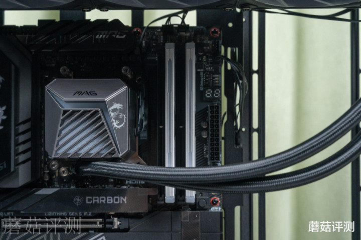 ▼水冷用的是微星的MAG CORELIQUID A15 360冰刃一体式水冷,9850X3D和9800X3D的硬件规格差不多,发热情况应该也没太大差别,用这款水冷可以轻松压制。