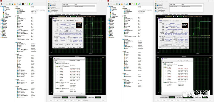 ▼跑个CPU-Z的压力测试,感觉9850X3D的PBO2没发挥作用,功耗方面9850X3D低不少,但频率方面二者差不多,温度9800X3D处理器82℃、9850X3D处理器71℃。