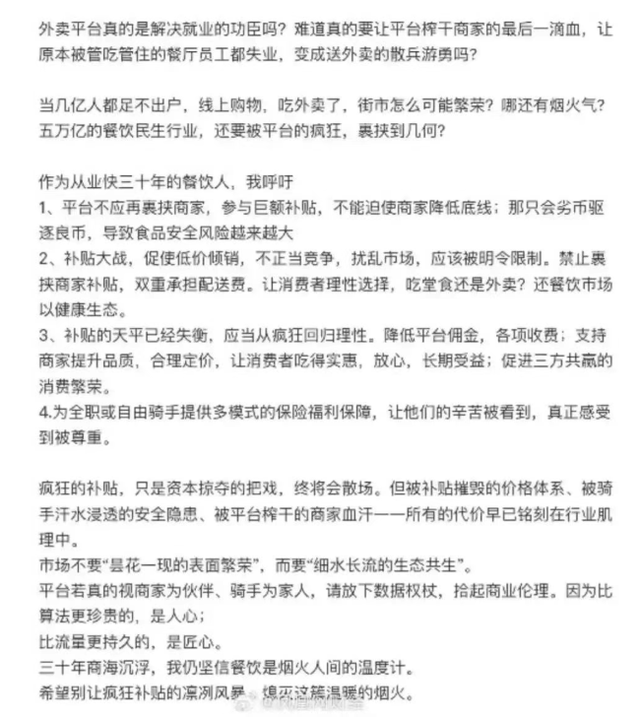 这不仅是一个餐饮人的呐喊,更是对行业生存逻辑的拷问 —— 餐饮的核心价值,从来不是 “谁能卖得更便宜”,而是品质、安全与服务。